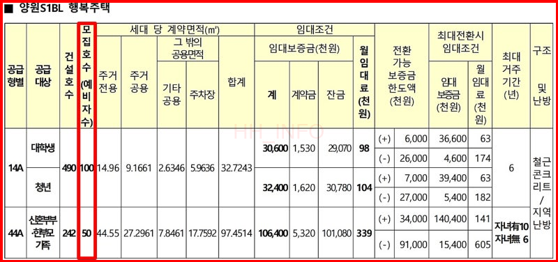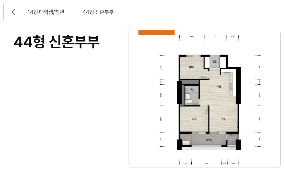 - 신혼부부/한부모가족: 전용 44타입, 월 임대료 34만원