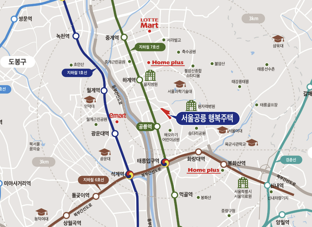 노원구 공릉동에 위치한 이 주택은 총 100세대 중 39세대를 모집합니다. 주요 대학교와 인접해 있으며, 다양한 지하철 노선을 쉽게 이용할 수 있는 입지입니다.