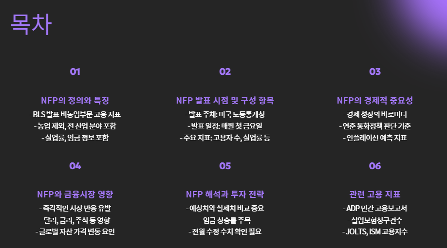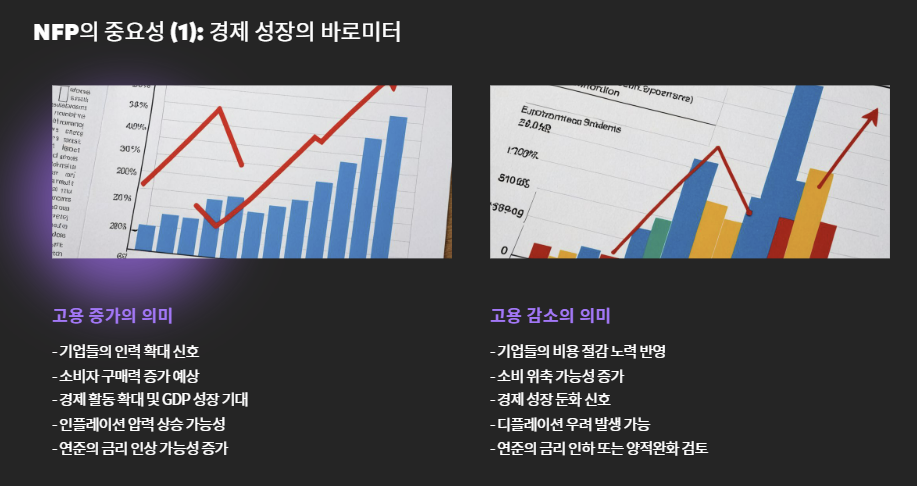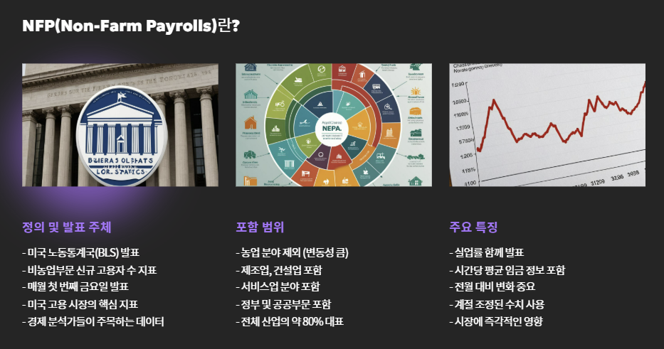 NFP는 농업 분야를 제외한 제조업, 건설, 서비스, 공공부문 등의 고용 상황을 보여주는 대표 지표입니다.
