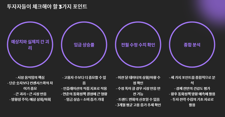 단순히 숫자가 중요한 것이 아니라, **‘컨센서스와 얼마나 차이 나는가’**가 시장을 움직입니다. - 임금 상승률