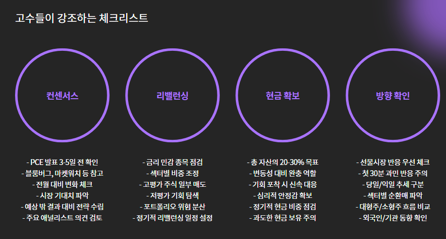 - 발표 전날 시장 불확실성 확대 → 현금 20~30% 확보 전략