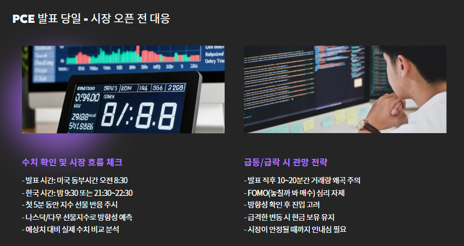 오늘은 PCE 발표 전 준비 → 발표 직후 대응 → 리스크 관리 및 포지션 조정까지,