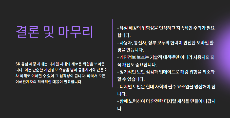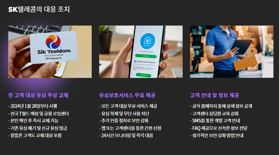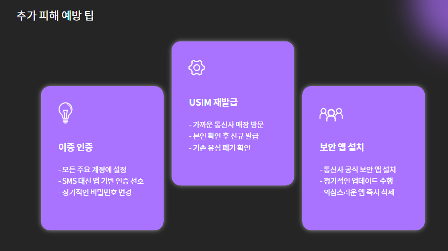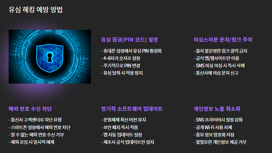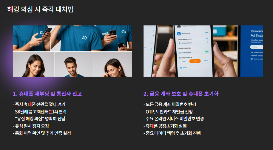 - USIM 재발급: 현재 사용 중인 유심이 해킹됐을 가능성이 있으므로, 새 유심으로 교체하세요.