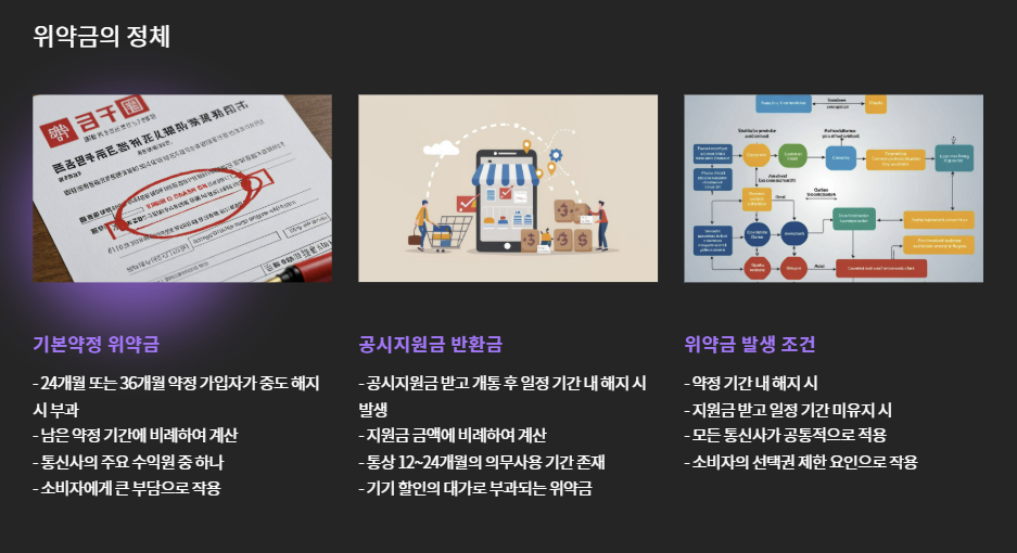- 기본약정 위약금: 24개월 또는 36개월 약정 가입자가 중간에 해지하면 부과