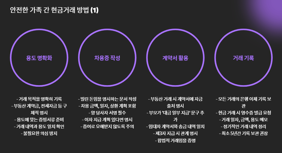 현금거래의 흔적을 남기고, 차용인지 증여인지 명확히 구분하는 것.