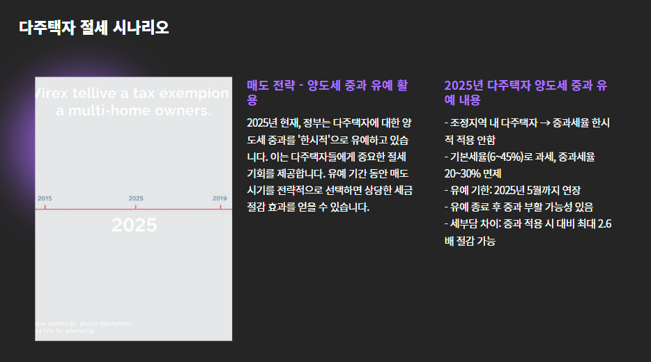 정부는 2025년에도 다주택자 양도세 중과를 ‘한시적’으로 유예 중입니다.