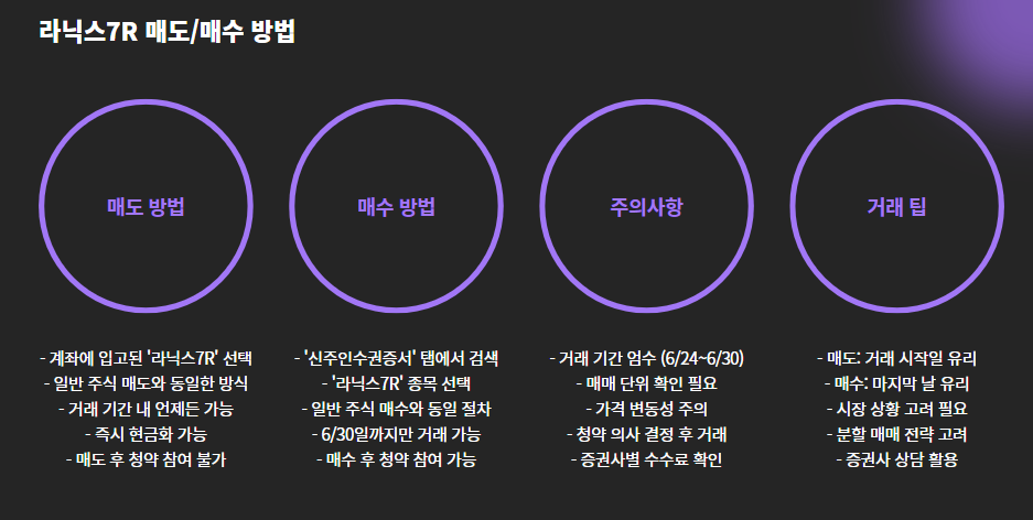 - 이 기간 안에 ‘라닉스7R’을 일반 주식처럼 매도하면 됩니다.