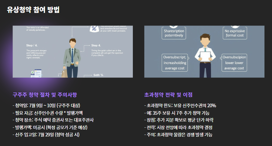 - 청약일: 7월 9일 ~ 10일 (구주주 청약)