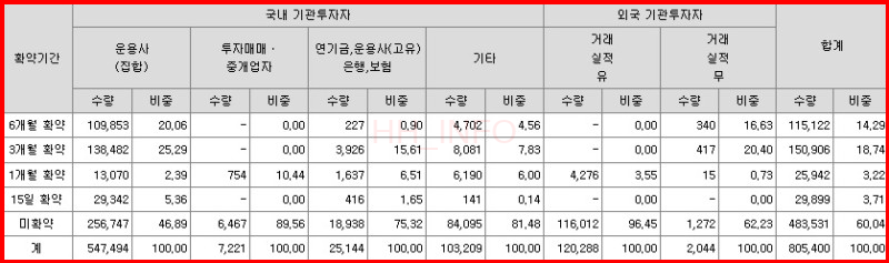 최종 의무보유확약은 기관투자자들이 해당 주식을 일정 기간 동안 보유할 것을 약속하는 것입니다.
