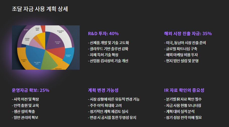 - 해외 시장 진출 자금: 35% (미국, 동남아 진출 준비)