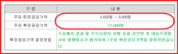 - 공모가: 상단가인 12,000원에 공모가가 결정되었으며, 이는 예상 상단 가격을 약 22% 초과한 금액입니다. 최근 증시 상황이 불안정한데도 공모가가 높아 아쉬움이 있습니다.
