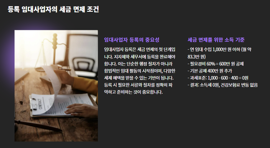 1. 등록 임대사업자: 연 소득 1,000만 원 이하라면 세금 없음