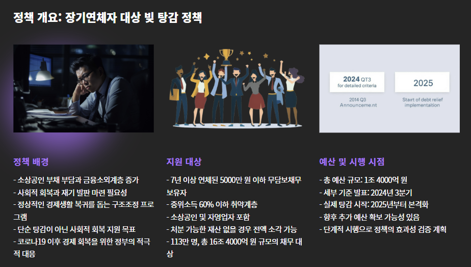 - 실행 시점: 세부 기준은 2024년 3분기, 실제 탕감은 2025년부터 본격화