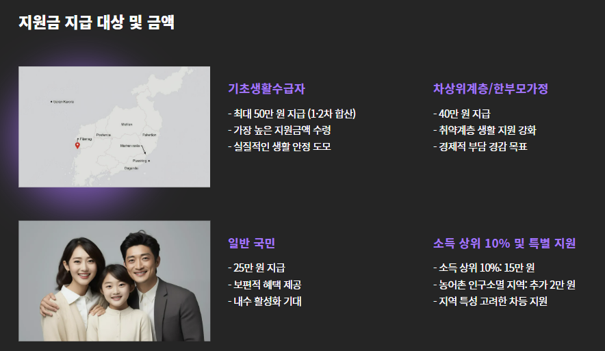 - 목적: 실질소득 보전 + 소비 진작 + 지역경제 활성화