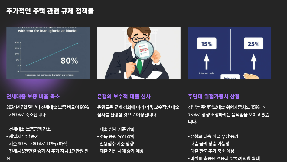 2024년 7월 말부터는 전세대출 보증 비율도 **90% → 80%**로 축소됩니다.