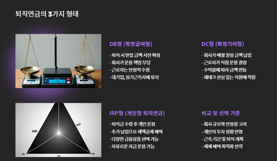 근로자가 퇴직 후 일시금 또는 연금 형태로 수령할 수 있게 해주는 노후 대비 수단이죠.