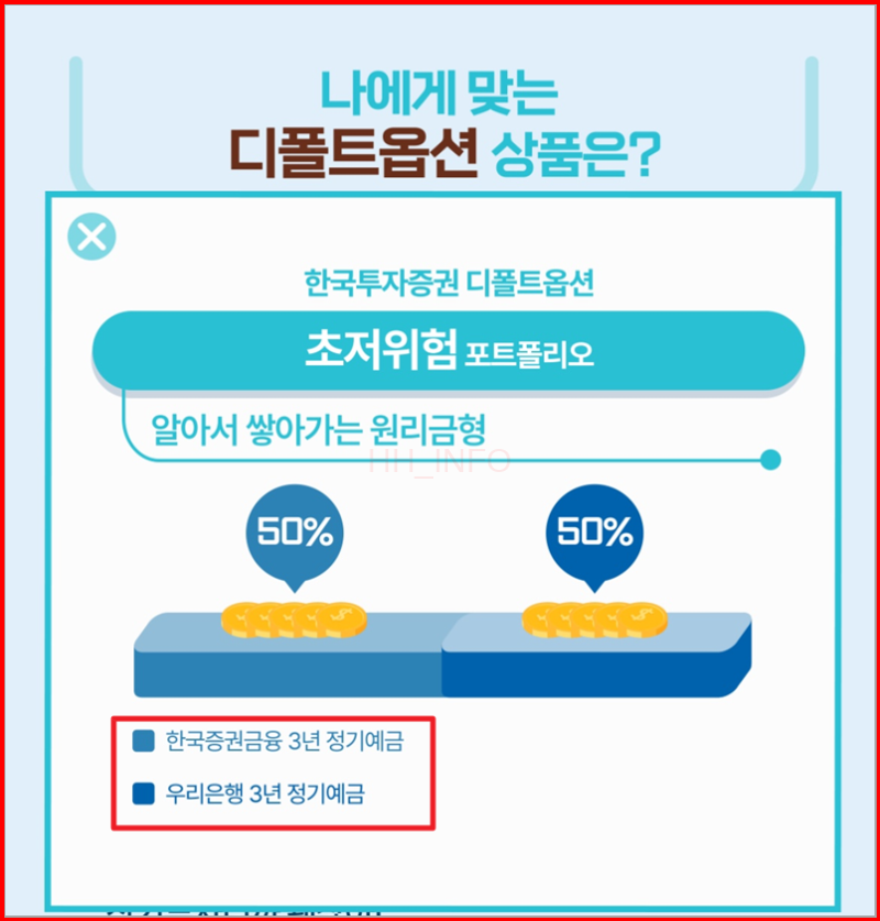 초저위험 옵션은 원금손실 가능성이 없는 정기예금상품으로만 구성되어 있어, 수익률이 낮아도 원금 보장을 원하는 분들에게 추천드립니다.
