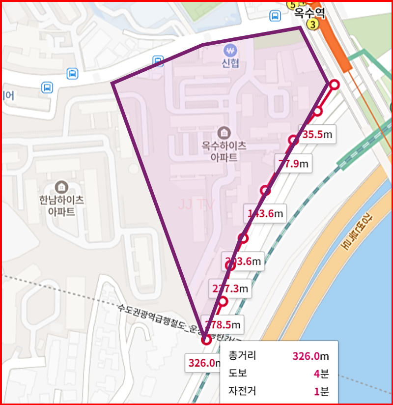 옥수하이츠는 입지 조건이 우수하여 도보 2분 거리에 있는 옥수역과 인접해 있습니다. 옥수동과 한남동 경계에 있어 한남동의 인프라를 활용할 수 있으며, 입주 시세가 점차 증가하고 있는 대표적인 아파트입니다. 재건축을 통해 용적률이 향상되며, 한강뷰를 갖춘 아파트 중 가치가 높은 단지입니다.