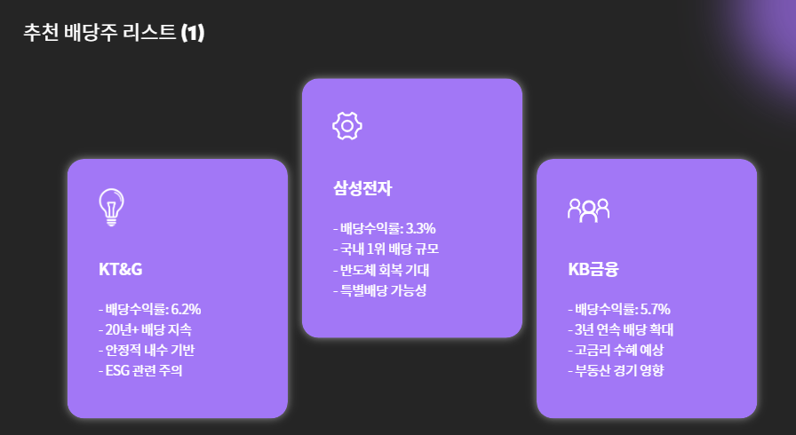 | 전자/기술 | 삼성전자 | 배당 + 성장형 혼합 |