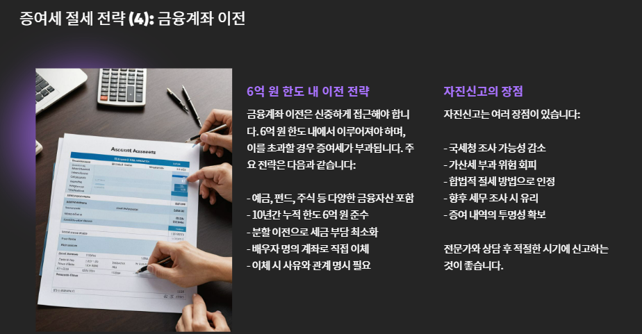 ✅ 전략 ④ 금융계좌 이전은 6억 한도 내 + 증여세 신고 추천