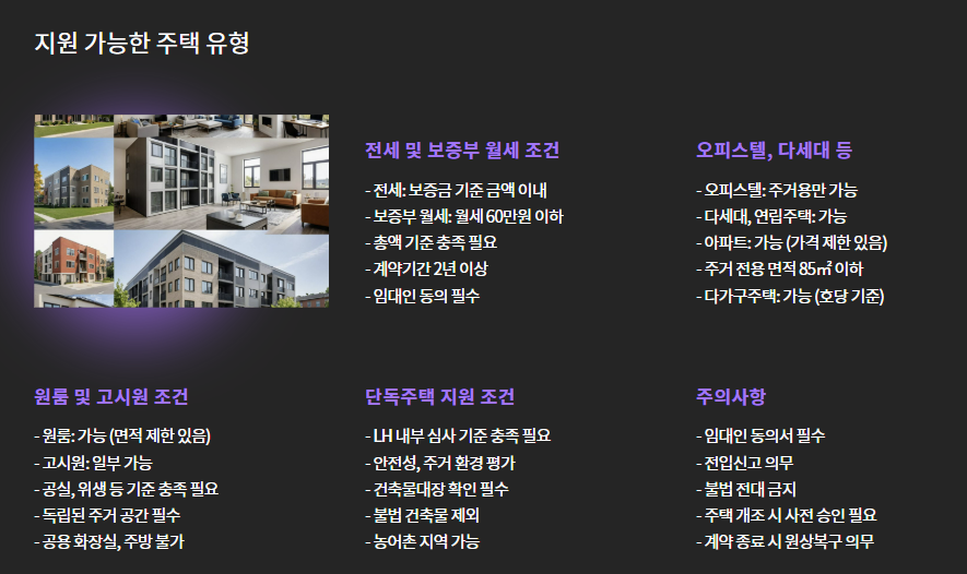 - 공공임대주택이 아닌 일반 전세 시장에서도 이용 가능