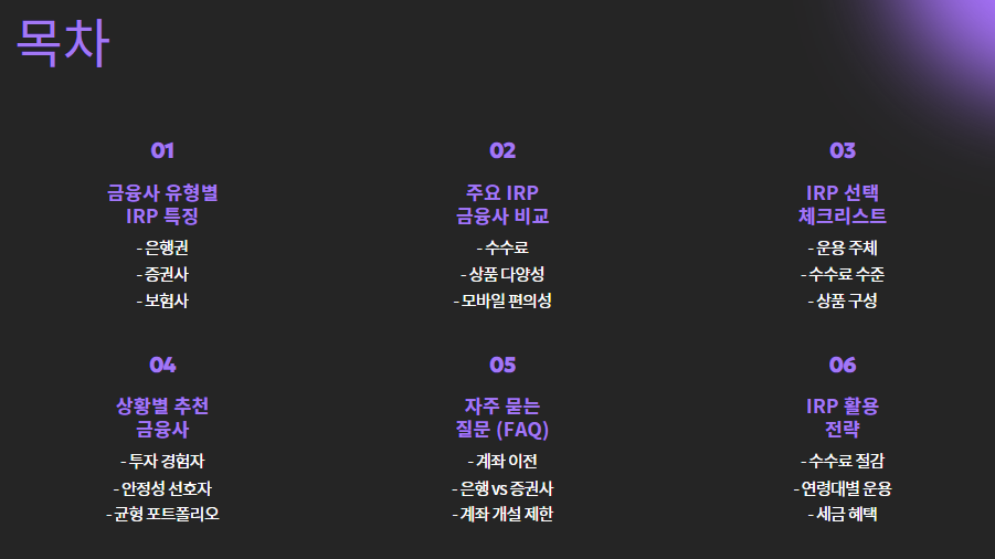 🧠 IRP 금융사 고를 때 체크리스트