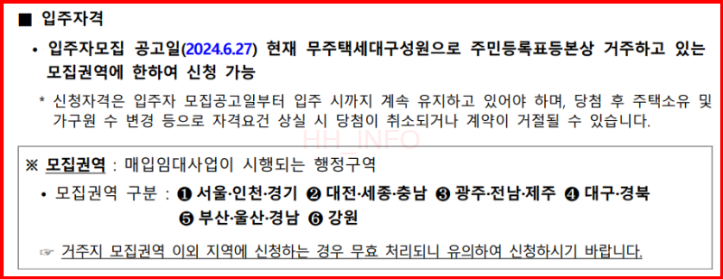 - 기준일: 모집공고일 2024년 6월 27일, 입주자격 판단 기준일